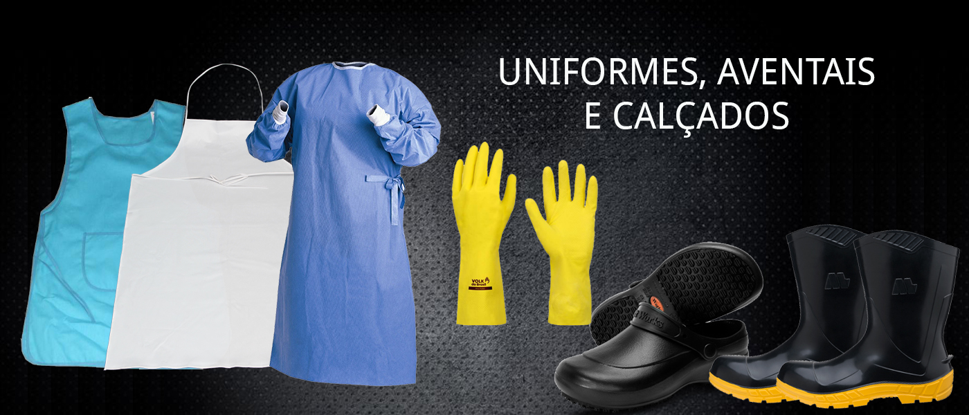 uniformes, aventais, calçados e luvas